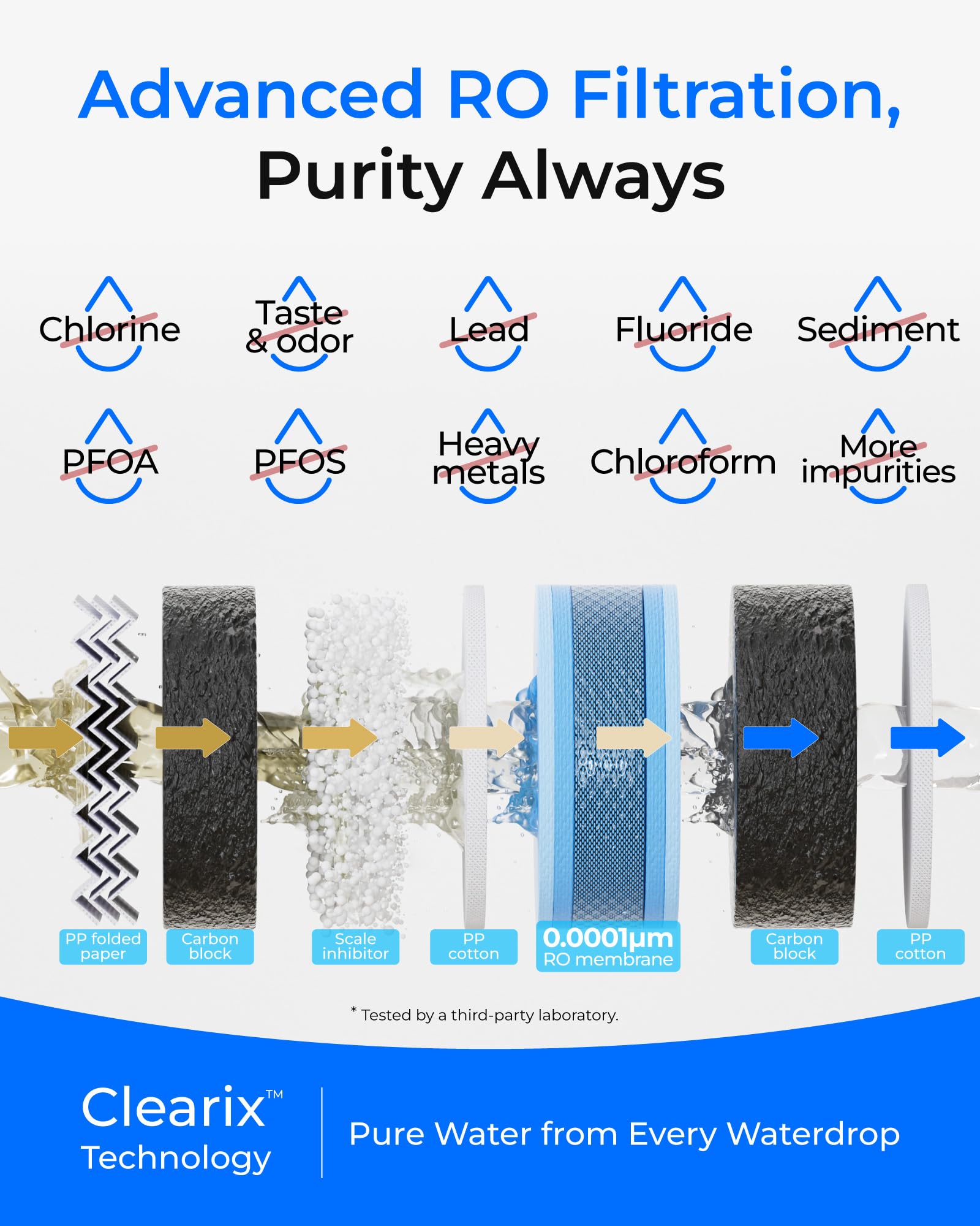 - 𝐅𝐢𝐥𝐭𝐫𝐚𝐜𝐢ó𝐧 𝐚𝐯𝐚𝐧𝐳𝐚𝐝𝐚 𝐝𝐞 𝟕 𝐞𝐭𝐚𝐩𝐚𝐬: El sistema de ósmosis inversa cuenta con un sistema de filtración preciso de 7 etapas que reduce contaminantes dañinos, como PFOA, PFOS, cloro, plomo, flúor, metales pesados y otras impurezas. Esto garantiza que cada gota de agua sea pura, segura y libre de mal sabor y olor, brindando una experiencia de bebida pura.